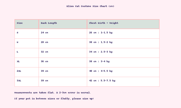 💡 If your pet is between sizes or fluffy, please size up for comfort!